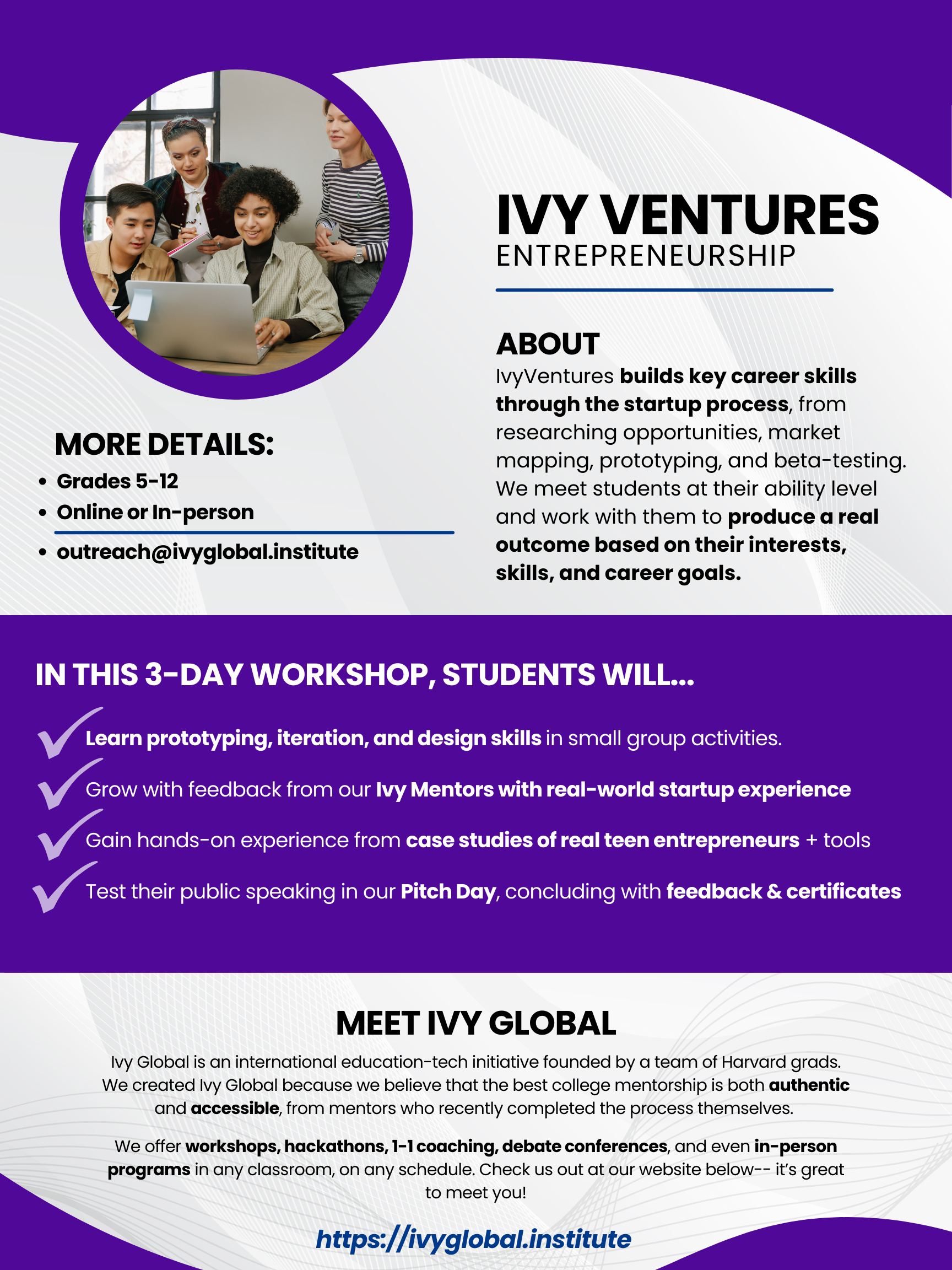 IvyVentures is available year-round for the following age groups: